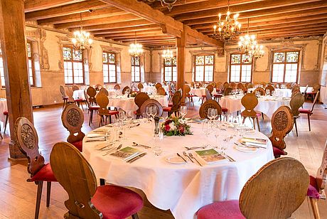 The dinner costs 55 CHF and includes a 3 course-menu (starter, pork or vegetarian main course and dessert), mineral water, a glass of wine or beer and a coffee. Additional drinks will be charged on consumption.
